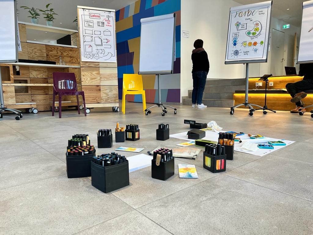 Raumgestaltung: Schaffe eine inspirierende Umgebung, die Kreativität und Zusammenarbeit fördert. Wähle einen Raum mit flexiblen Möbeln, Whiteboards, Projektionsflächen und genügend Platz für Gruppenarbeit. Denke auch an natürliche Beleuchtung und Pflanzen, um eine angenehme Atmosphäre zu schaffen.