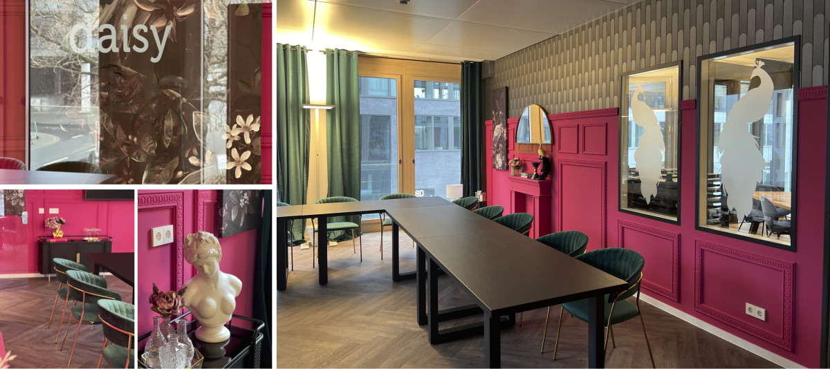 Die schicke und stilvolle Einrichtung unseres Raumes DAISY ist von der opulenten Ära der 1920er Jahre inspiriert. Schimmernde Art-déco-Elemente, verzierte Wände und goldene Akzente verleihen dem Raum einen Hauch von Luxus. Die flexibel gestaltbaren Sitzarrangements ermöglichen vielfältige Nutzungen, sei es für Präsentationen, kreative Workshops oder (informelle) Meetings. DAISY ist bis ins kleinste Detail durchdacht – von glänzenden Glaselementen bis zu weichen Polsterstühlen. Die Atmosphäre ist von einer dezenten Brise frischer Blumen durchzogen, die eine subtile Verbindung zur literarischen Vorlage herstellt. Moderne Technologie ist nahtlos integriert, um ein reibungsloses Meetingerlebnis zu gewährleisten. Ein großer Screen und eine hochwertige Audioausstattung sorgen für eine zeitgemäße Arbeitsumgebung.